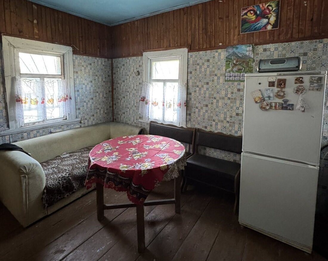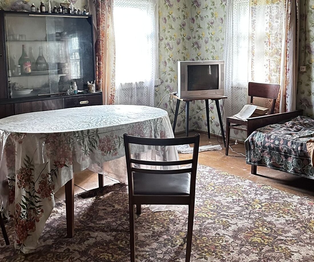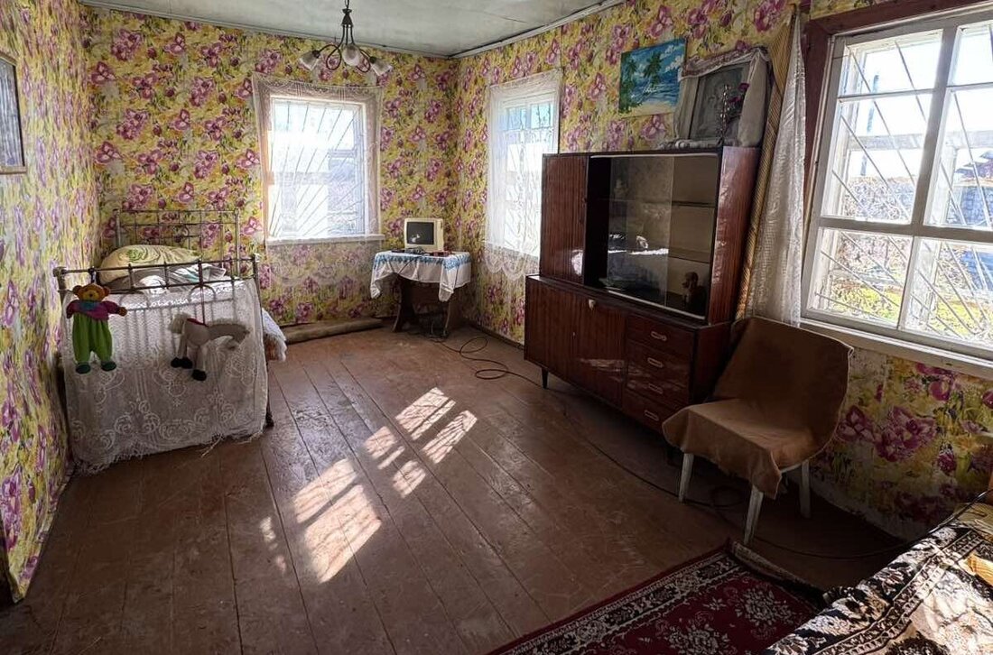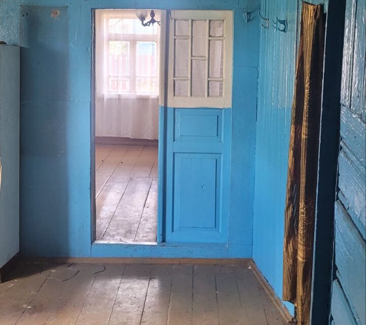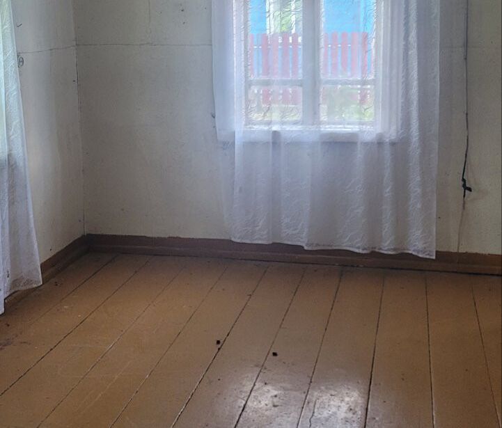 Дом деревянный, 1950 года постройки. Сруб крепкий, ровный, крыша целая. Общая площадь – 55 квадратов. Внутри нет лишнего хлама, большого ремонта не требуется. Отопление печное, колодец рядом со входом.