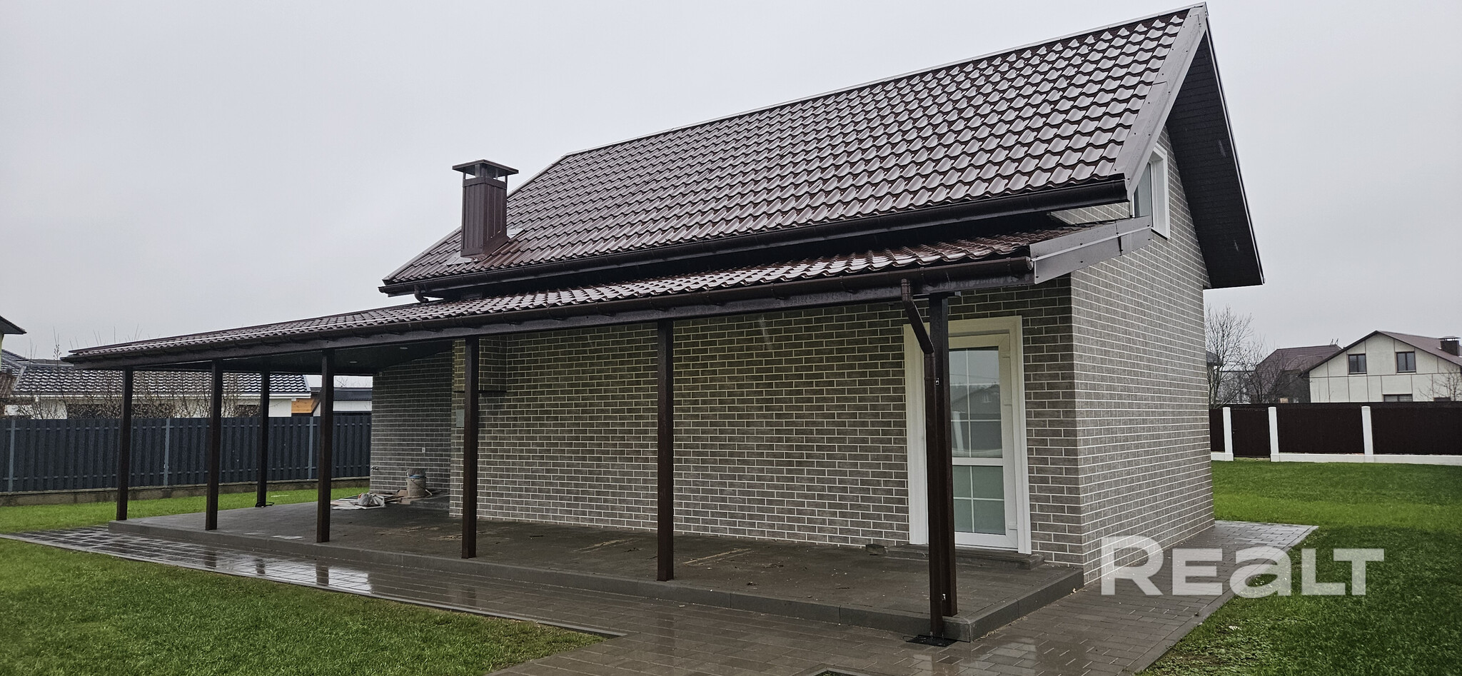Дом в деревне Лесковка в Минском районе был построен в 2025 году. Его возвели в два уровня из клееного бруса на ленточном фундаменте. Зону сауны достраивали из блоков. Всего он занимает 84 квадратных метра. Крышу устелили металлочерепицей.