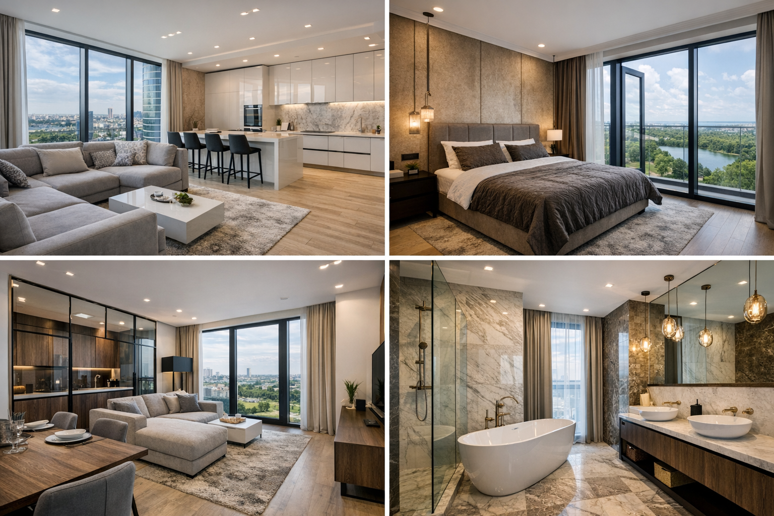 № 1. Четырехкомнатная квартира в «Парусе» — одном из небоскребов Минска. Площадь квартиры 181 кв.м., из которых 34 метра приходится на гостиную, которая соединенная с 18 метровой кухонной зоной. Два санузла, совокупной площадью более 12 кв.м. В наличии лаконичный ремонт, мебель, выполненная по индивидуальному заказу, кухня оборудована всем необходимым плюс установлена система очистки воды. Ожидаемо, что подобная квартира, в шаге от метро и вблизи центра города не может стоит дешево — 430 000 $ или 2 373 $ за метр на момент подготовки обзора. И это с учетом снижения на 110 000 $ за прошлую неделю.