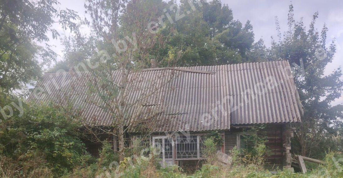 Здесь можно купить деревянный дом площадью 41,8 м². Износ сельсовет оценил в 70%, но мы помним про озеро рядом — большую ценность представляет участок 20 соток, а не хата.