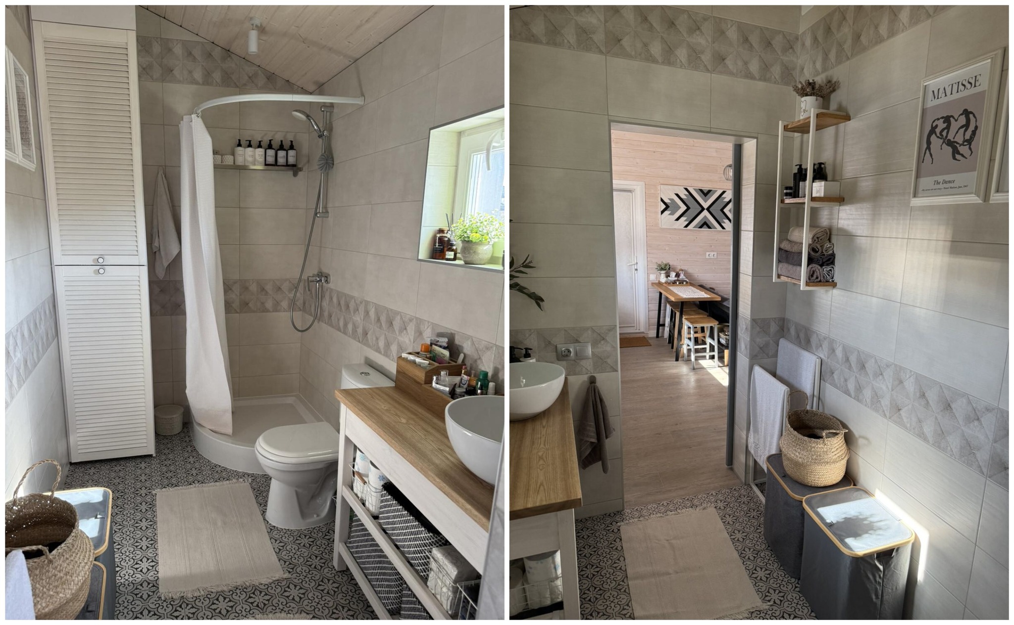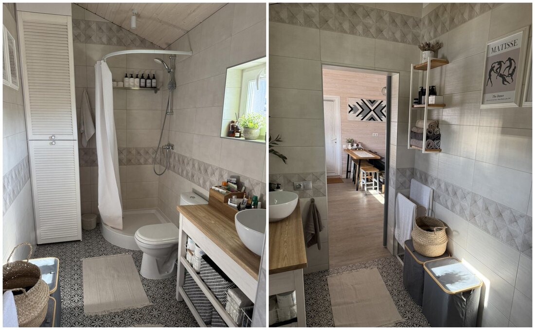 Остальные две комнаты заняли спальня и совмещенный санузел, где сделан душ.