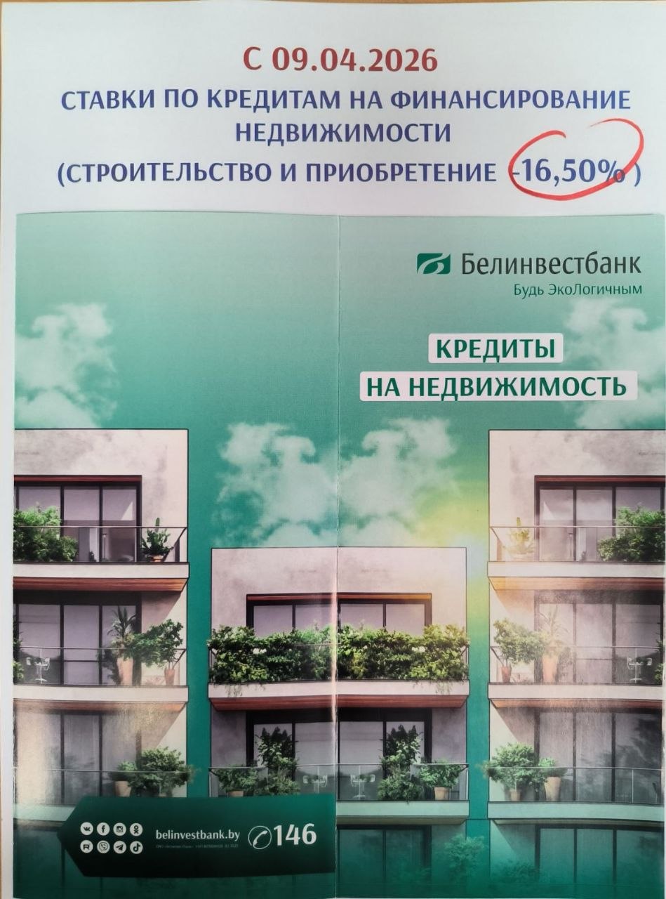 Всего неделю назад «Белинвестбанк» уже объявлял о снижении процентной ставки по кредитам на покупку жилой недвижимости, а сегодня стало известно об очередных приятных изменениях. Вместо 17,50% с 9 апреля ставка составит 16,50%. Об этом Realt рассказали в банке.