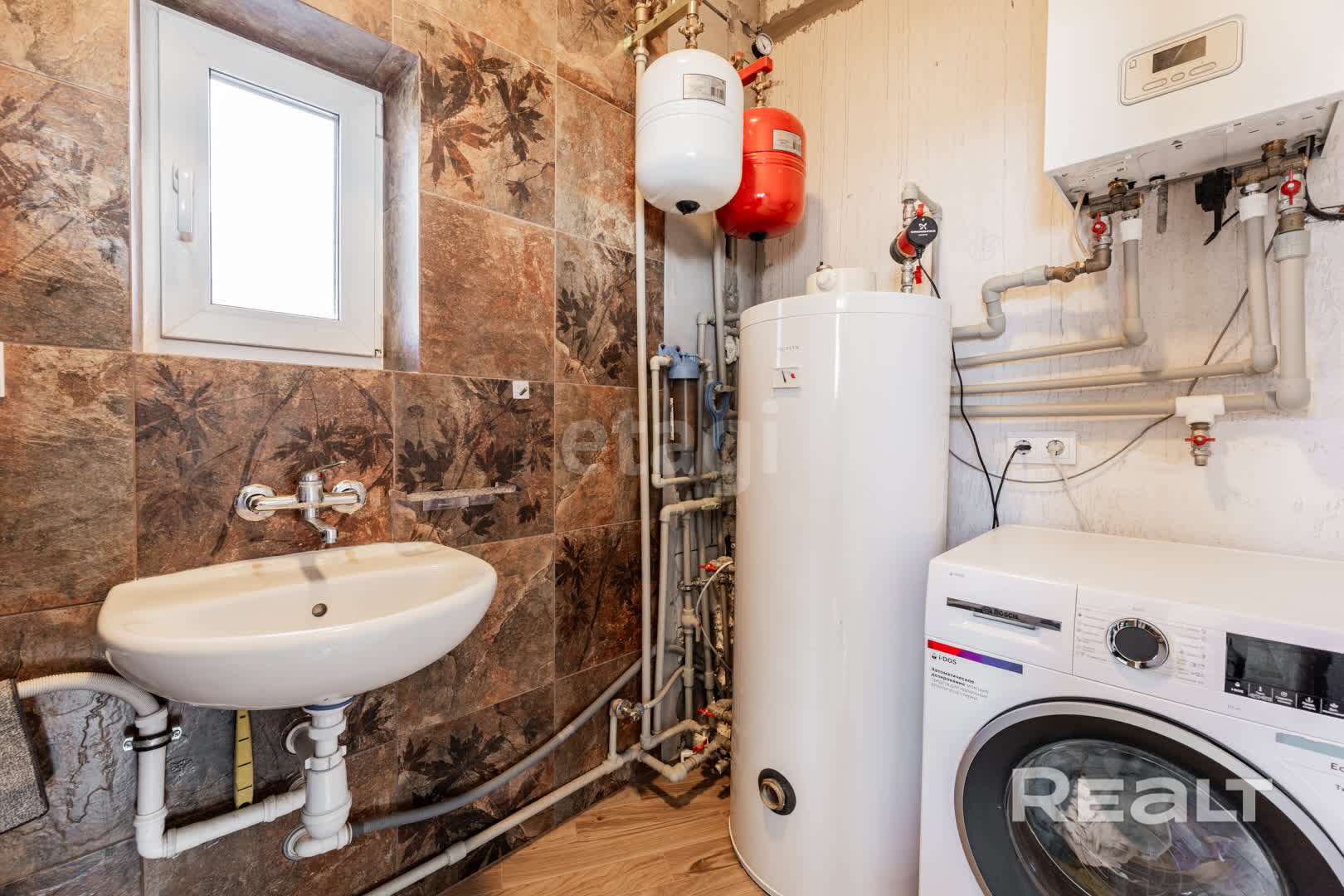 Отопление на газу, теплые полы во всех помещениях, кроме спален. Водоснабжение центральное, канализация местная с двумя колодцами.