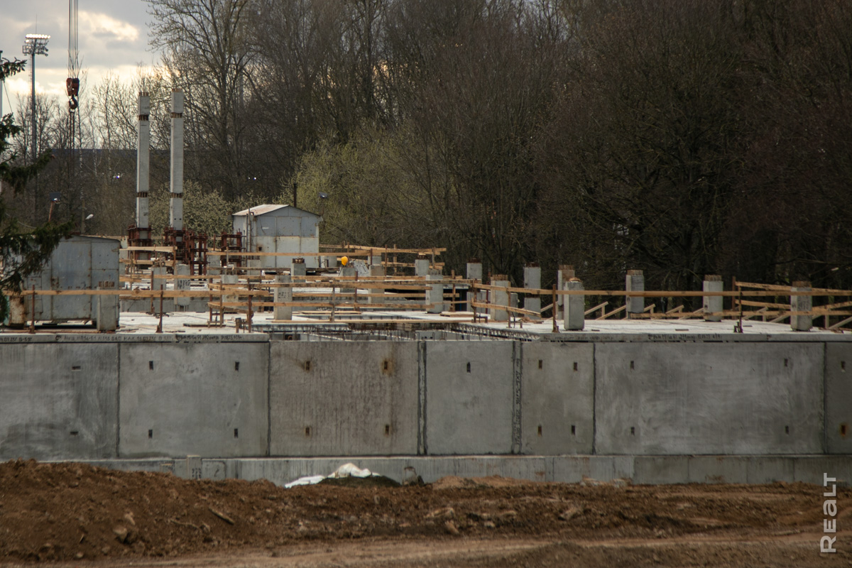 Мы заглянули за строительный забор, чтобы оценить темпы работ. На объекте активно работает техника. Строители уже завершили устройство буронабивных свай (на каждую секцию их приходится по 170−200 штук), а сейчас заканчивают монтаж цокольного этажа здания.