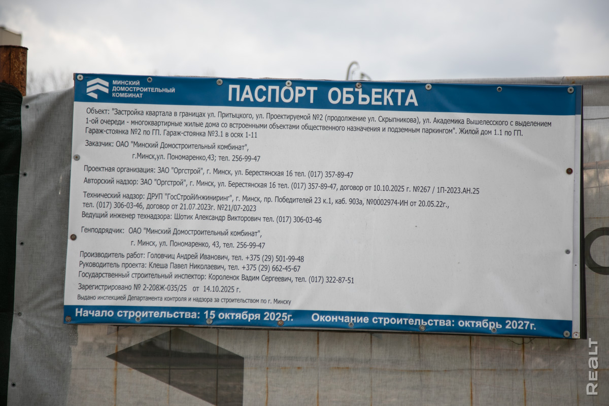 В западной части Минска, в районе станции метро «Каменная Горка», идет стройка, за которой (как оказалось) следят сотни потенциальных новоселов. Речь о площадке в границах улиц Скрипникова, Академика Жебрака и Академика Вышелесского. Еще недавно здесь доживали свой век остатки деревни Кунцевщина, а сегодня строится дом на 341 квартиру. Продажи жилья в многоэтажке еще не стартовали, поэтому ждем официальной информации о ценах и показываем, что сейчас происходит на стройке.