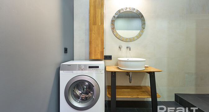 В совмещенном санузле установлена и ванна, и душевая, подключена стиральная машина.