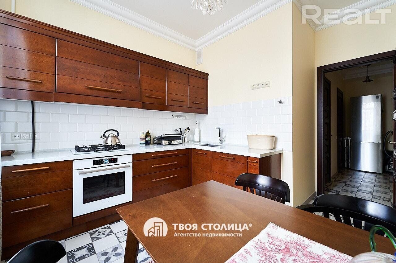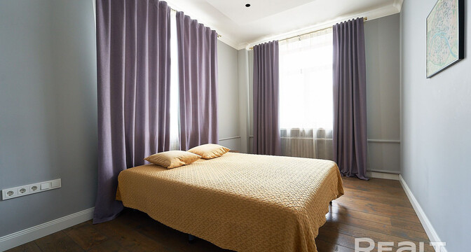 Заканчиваем квартирой с отличным ремонтом в доме на Змитрока Бядули, 8. Это рядом с улицами Козлова, Чапаева и Первомайская. До станции метро «Площадь Победы» около 700 метров, значит пешком можно дойти меньше чем за десять минут. Четырехэтажная сталинка была построена в 1952 году.
