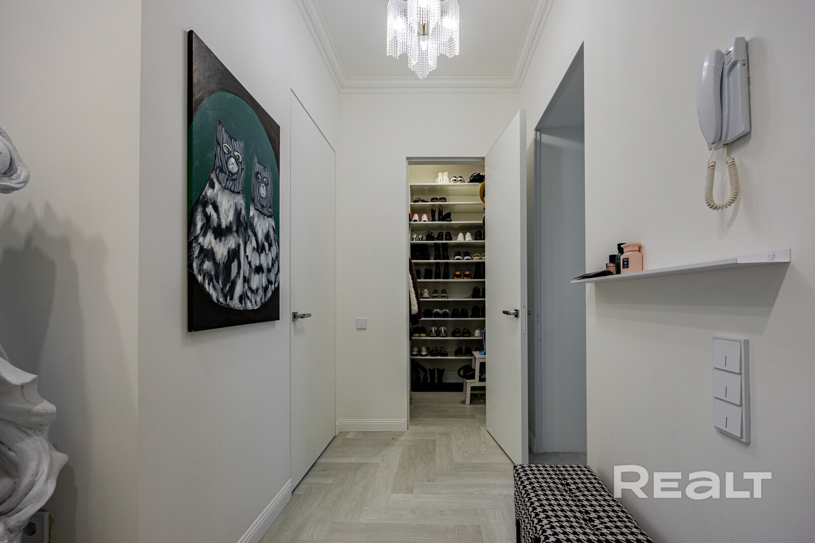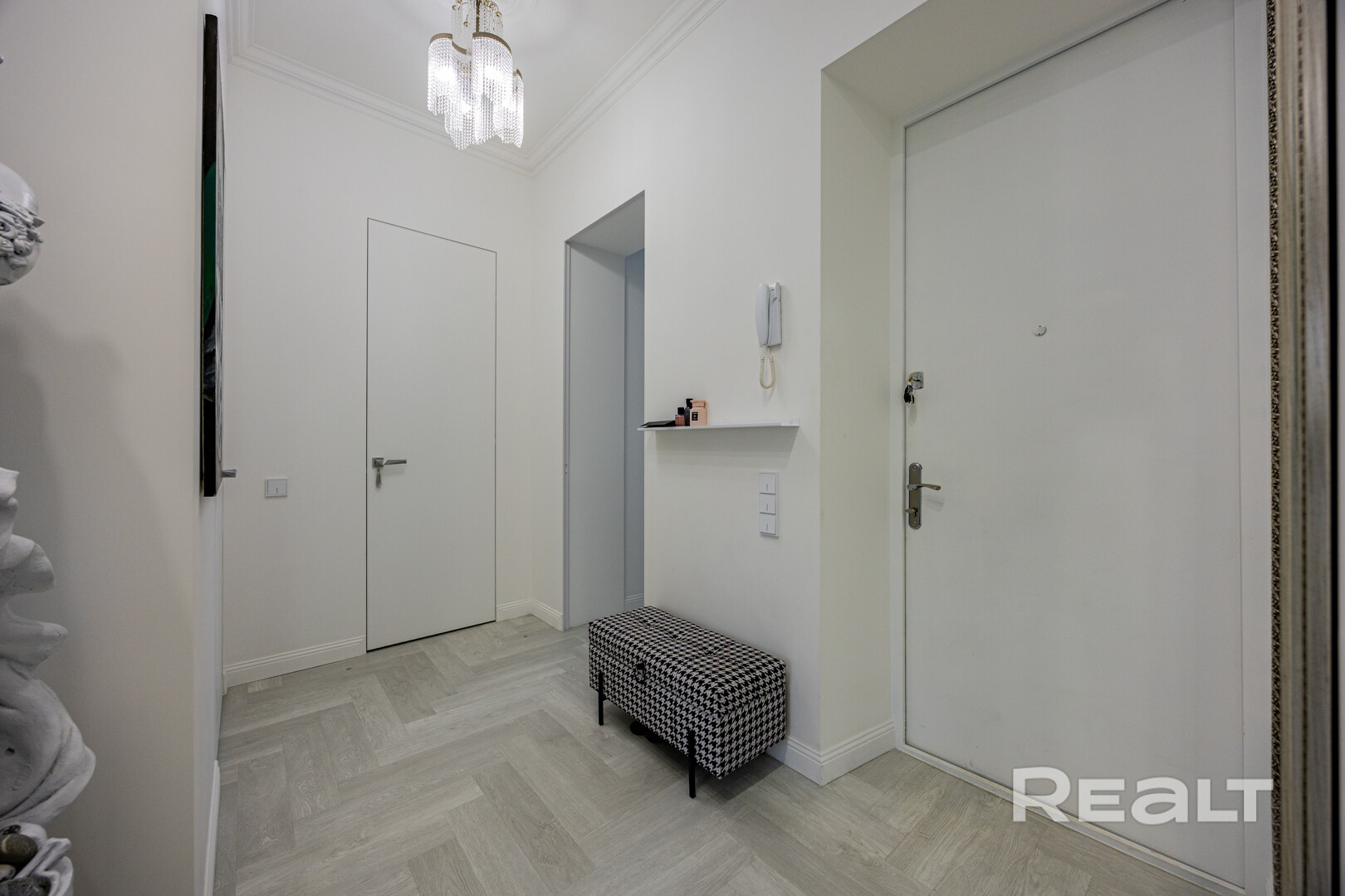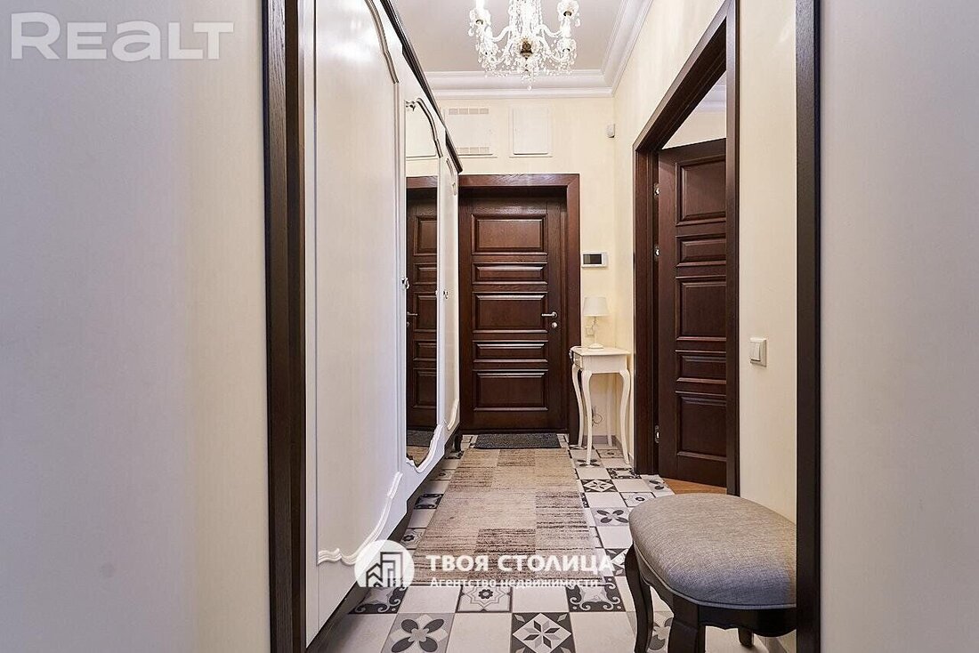 Прихожая в квартире тоже немаленькая — 9 квадратных метров. Здесь стоит шкаф с большим зеркалом.