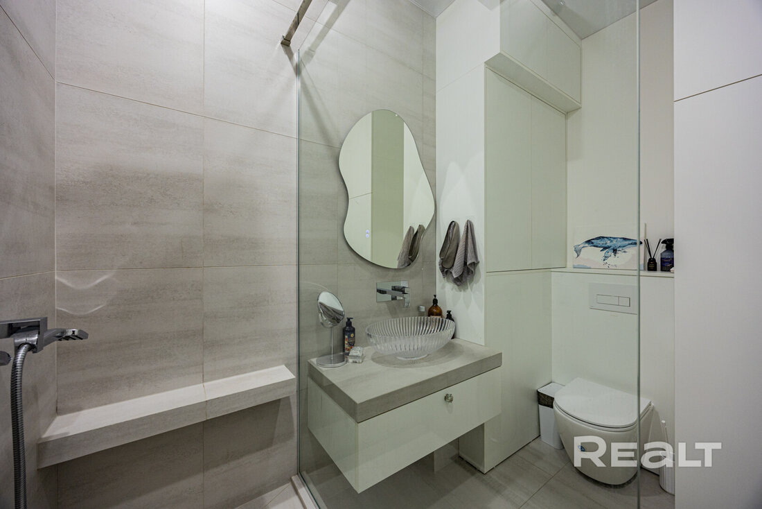 Санузел раздельный. Подключена стиральная машина и установлен душ.