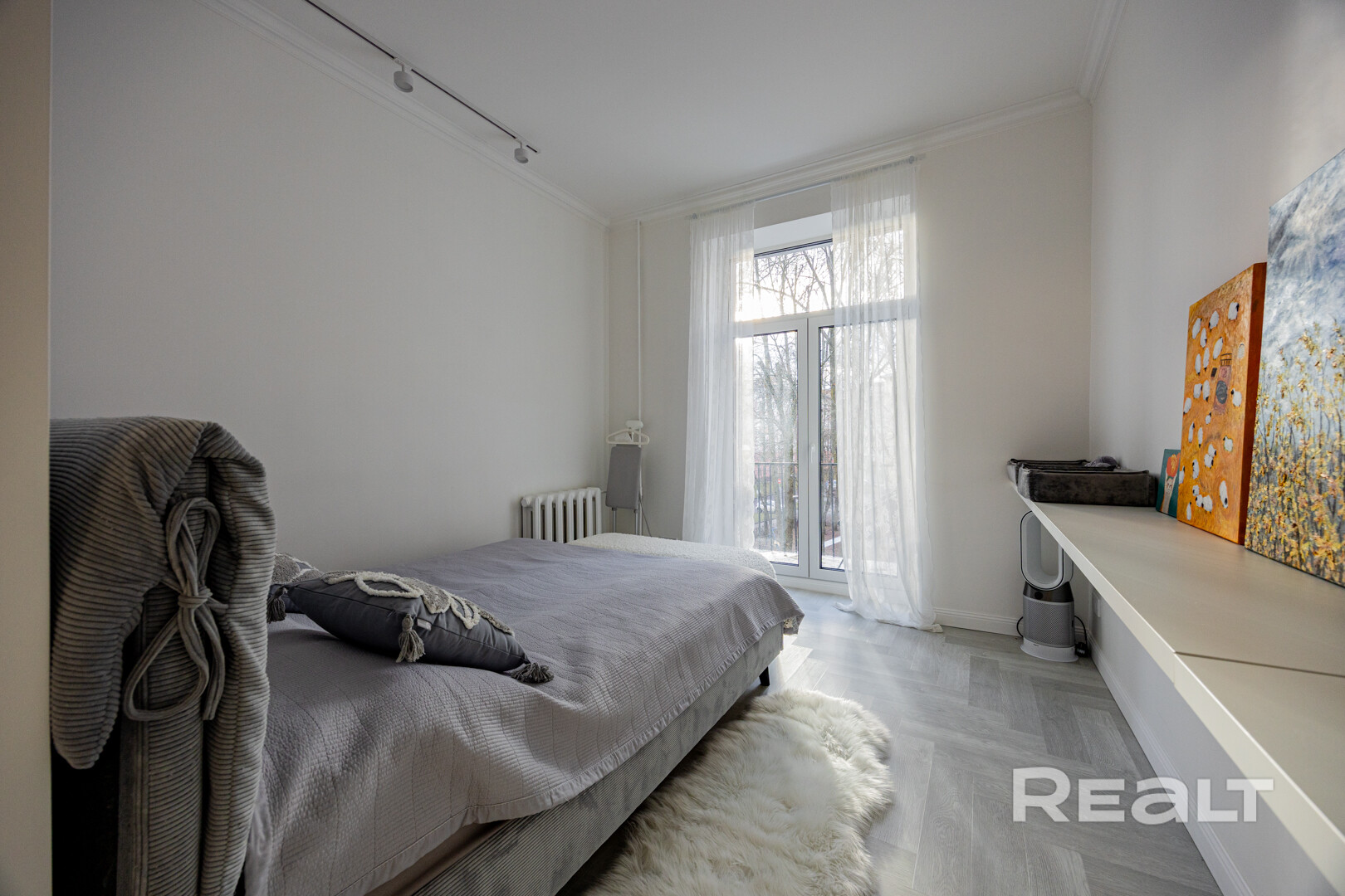 В изолированной комнате оборудована спальня. Есть отдельная гардеробная.