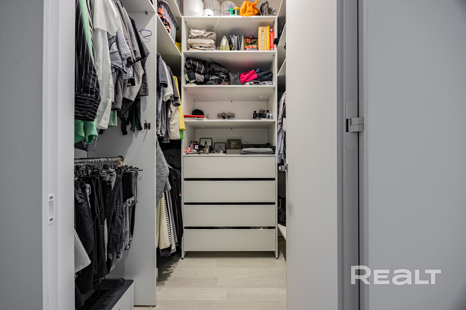 В квартире есть гардеробная с оборудованной системой хранения.