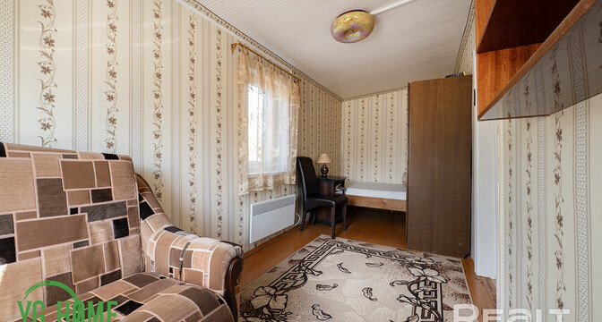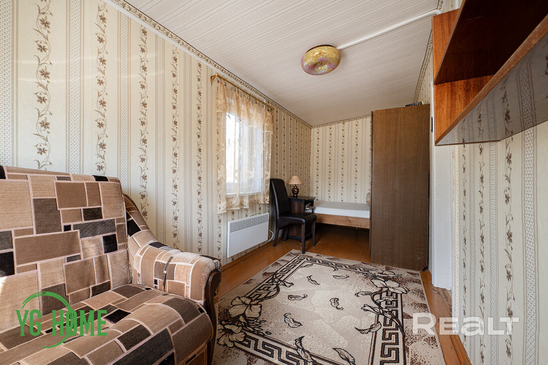 Общая площадь — 34 квадратных метра. Есть две изолированные комнаты и санузел в доме. Отопление в доме электрическое, газ — из баллона, канализация местная, а вода из центрального водопровода.