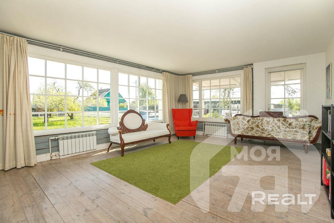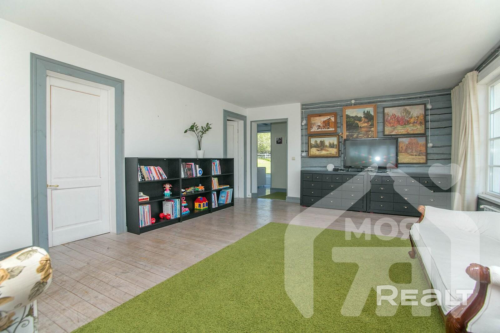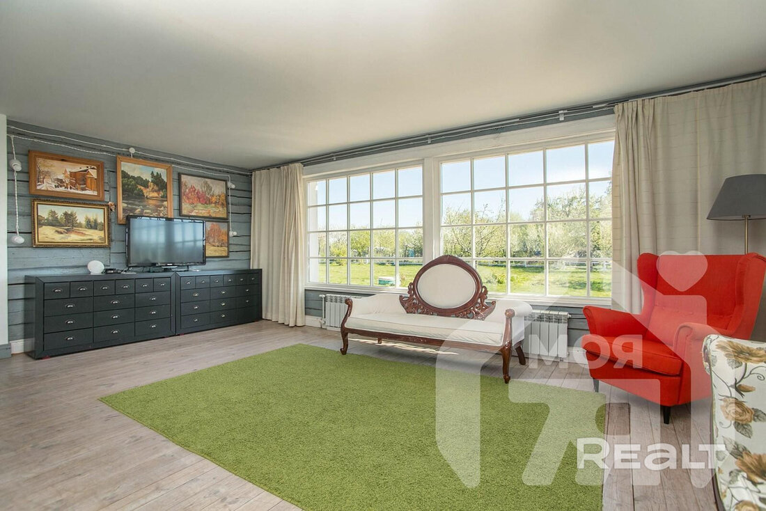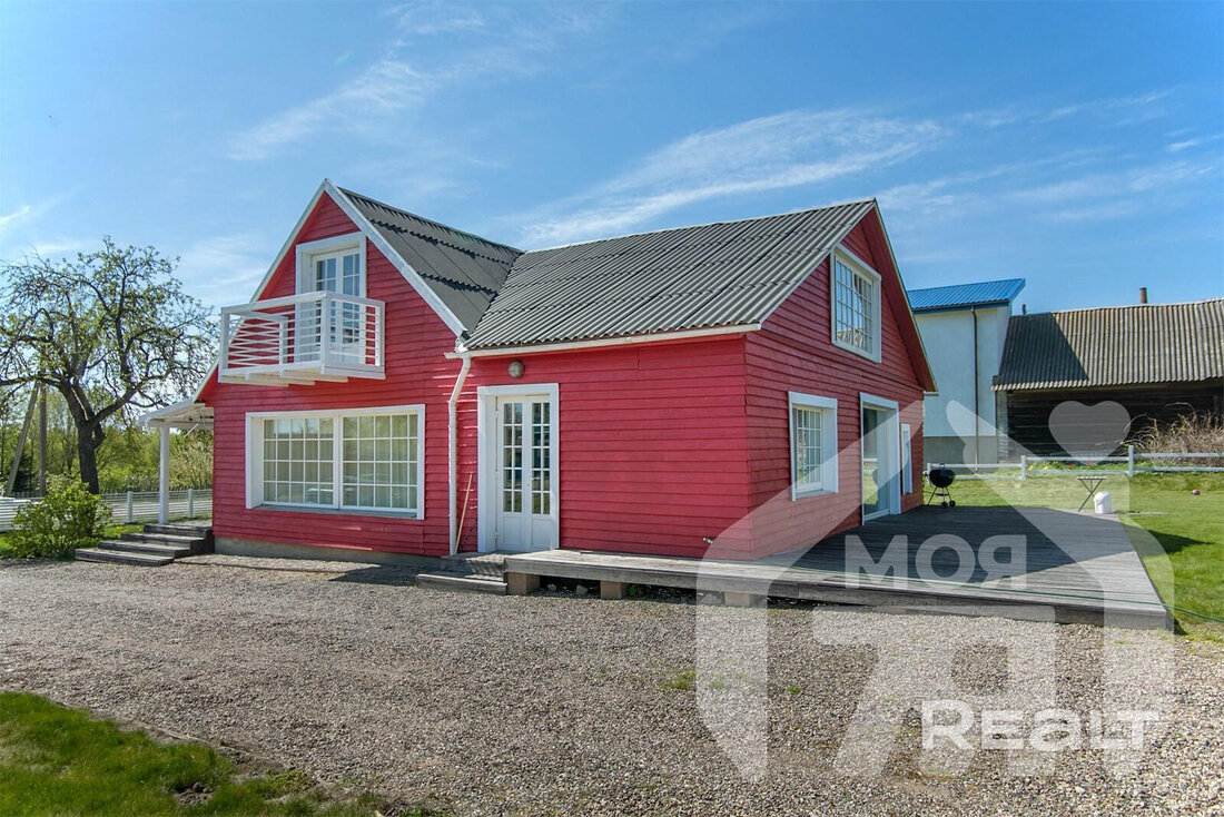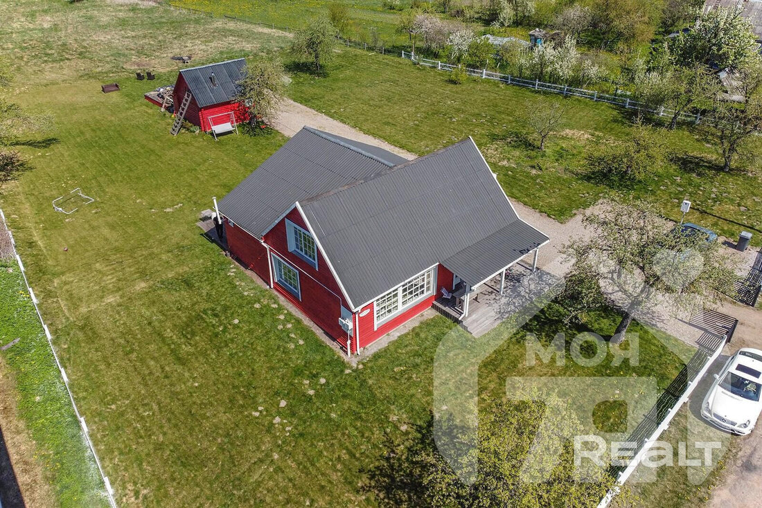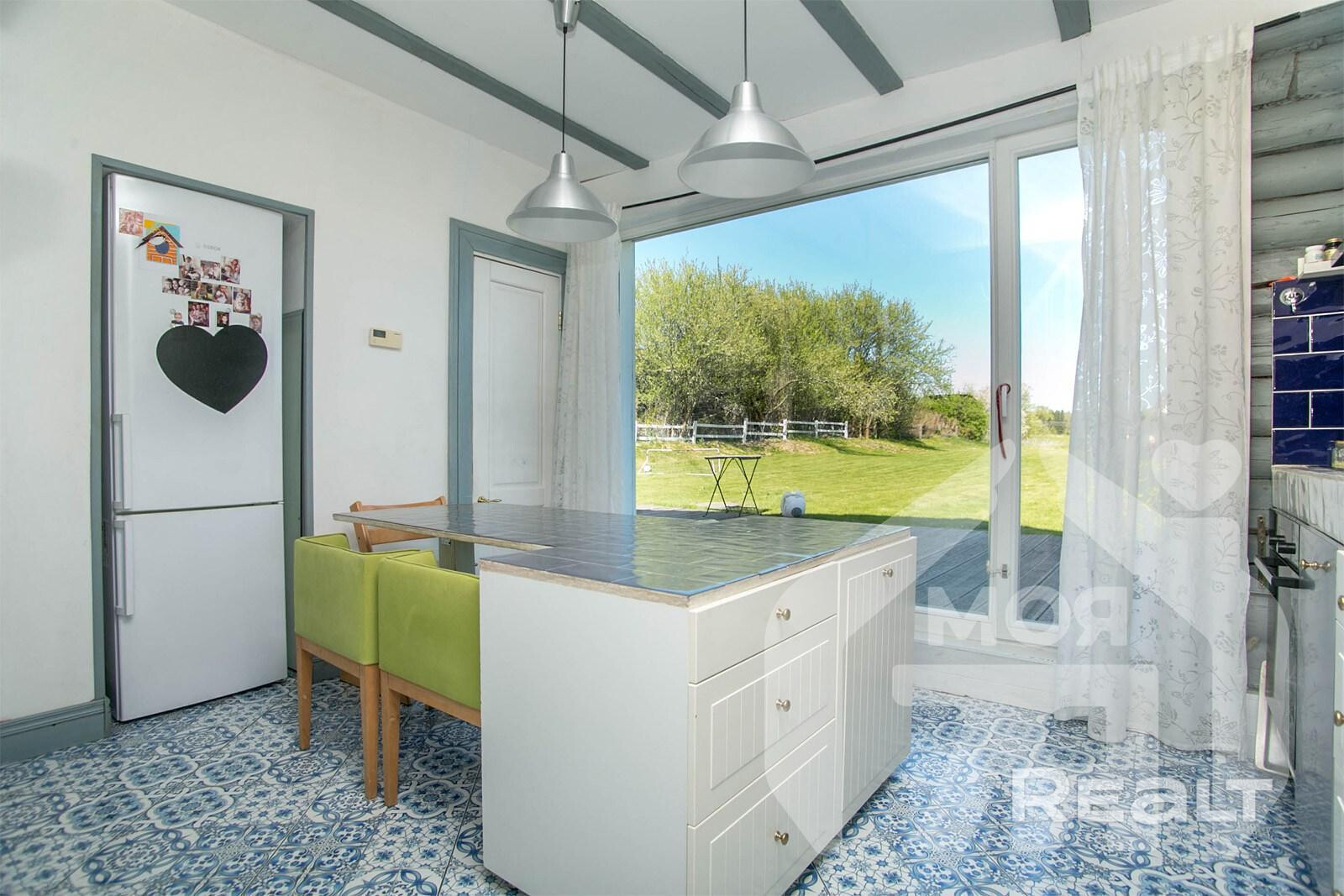 На просторном участке в 60 соток в деревне Лапоровичи, в 400 метрах от Минского моря, продается красивый деревянный дом с дизайнерским интерьером. Благодаря расположению на возвышенности из окон мансардного этажа открывается живописный вид на водные просторы. В нем все готово для комфортного проживания: от мебели и бытовой техники до самого современного инженерного проживания. Стоимость для этой локации выглядит адекватной. Вот подробности.