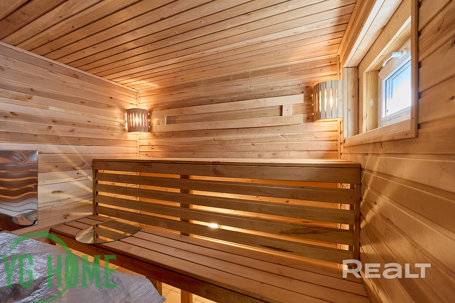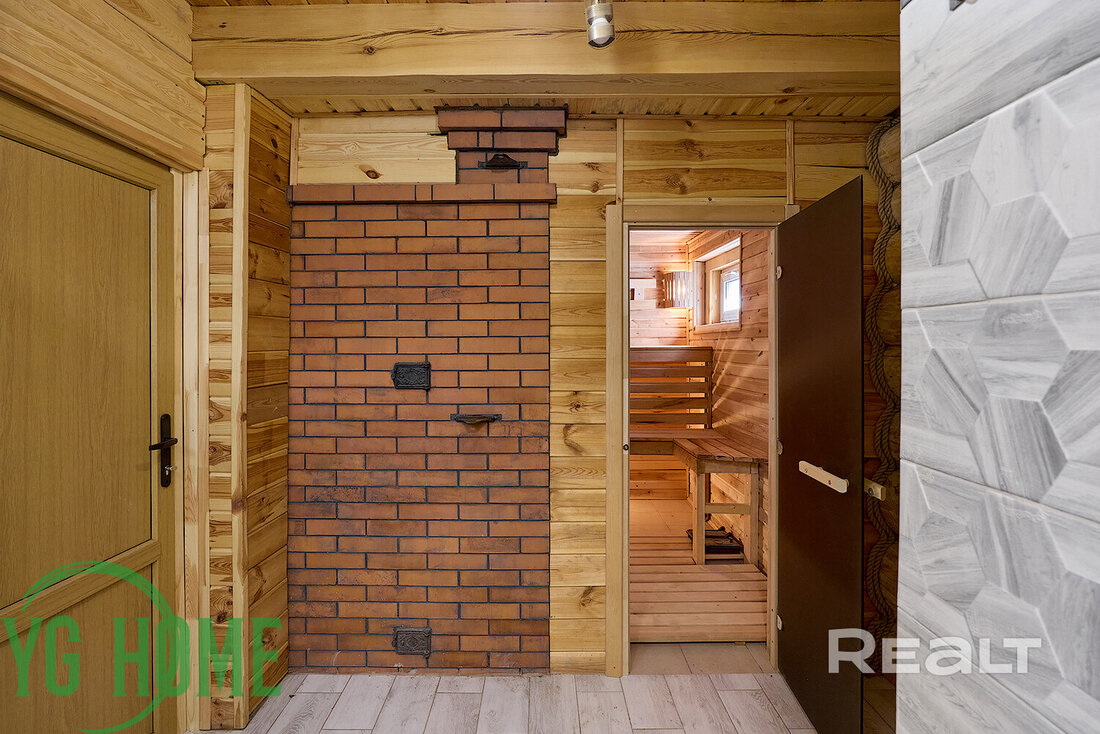 Вернемся на первый этаж и расскажем о тех самых дополнительных помещениях. Дело в том, что тут находится сауна, а также большой санузел.