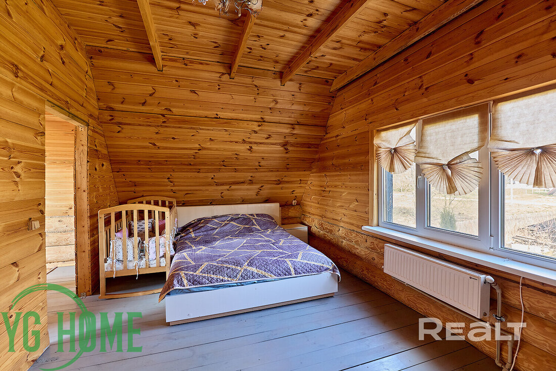Наверху расположены две спальные комнаты. Из одной можно выйти на роскошный балкон с видом на участок и окрестности. Кстати, дом продается со всей мебелью и техникой.