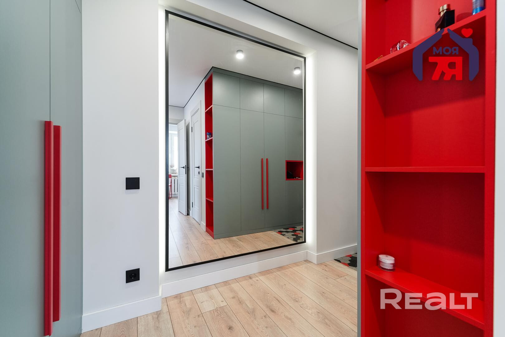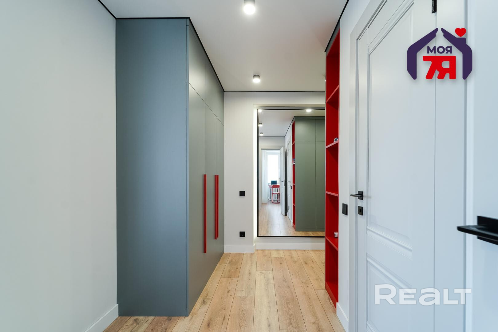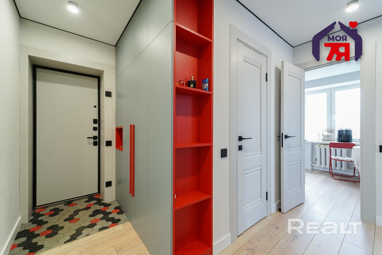 А вот квартира уже совсем иначе. С самого входа она выделяется на фоне стандартного жилья в брежневках — смелые сочетания цветов в мебели на фоне белоснежных стен.