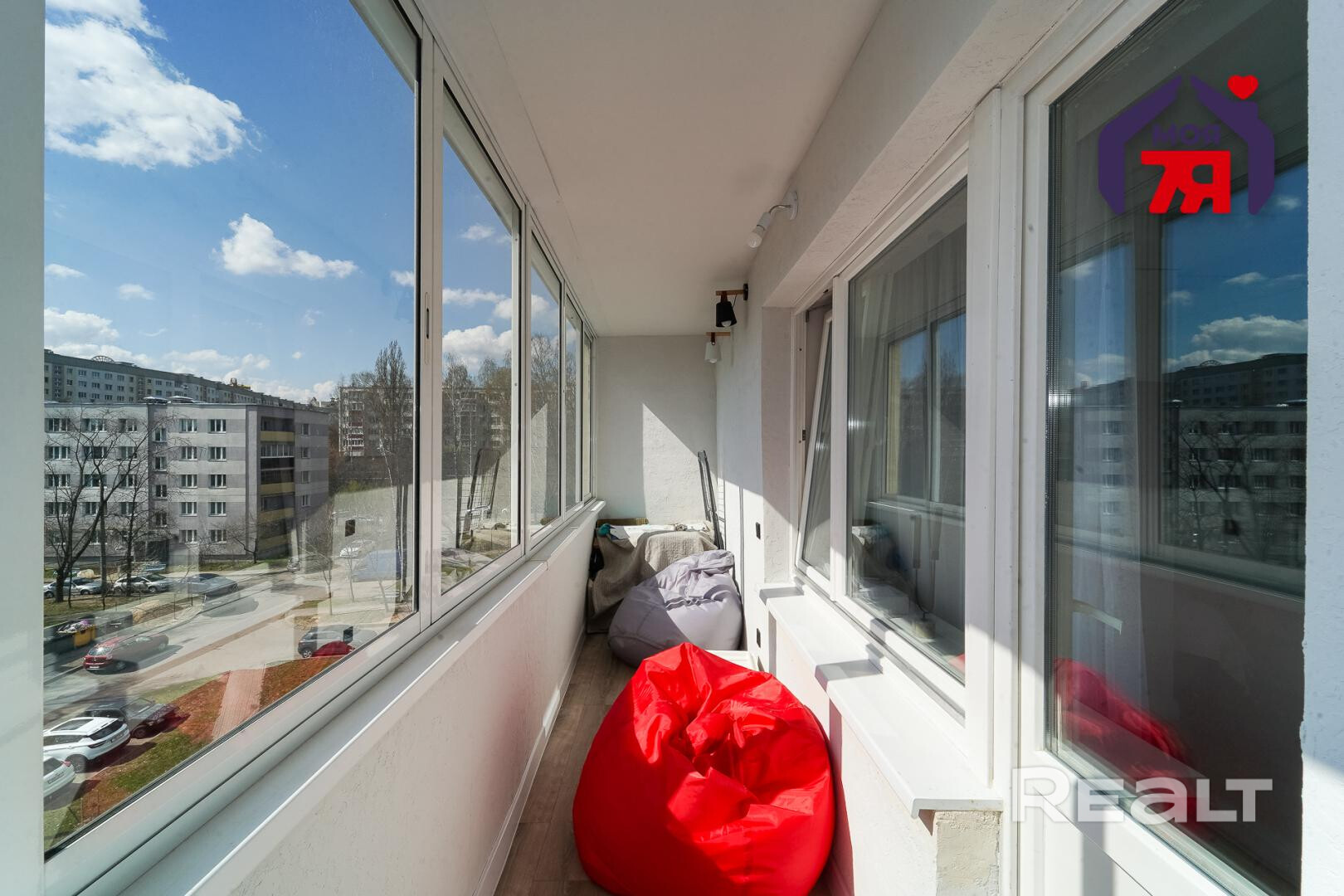В жилой комнате есть выход на застекленный балкон.