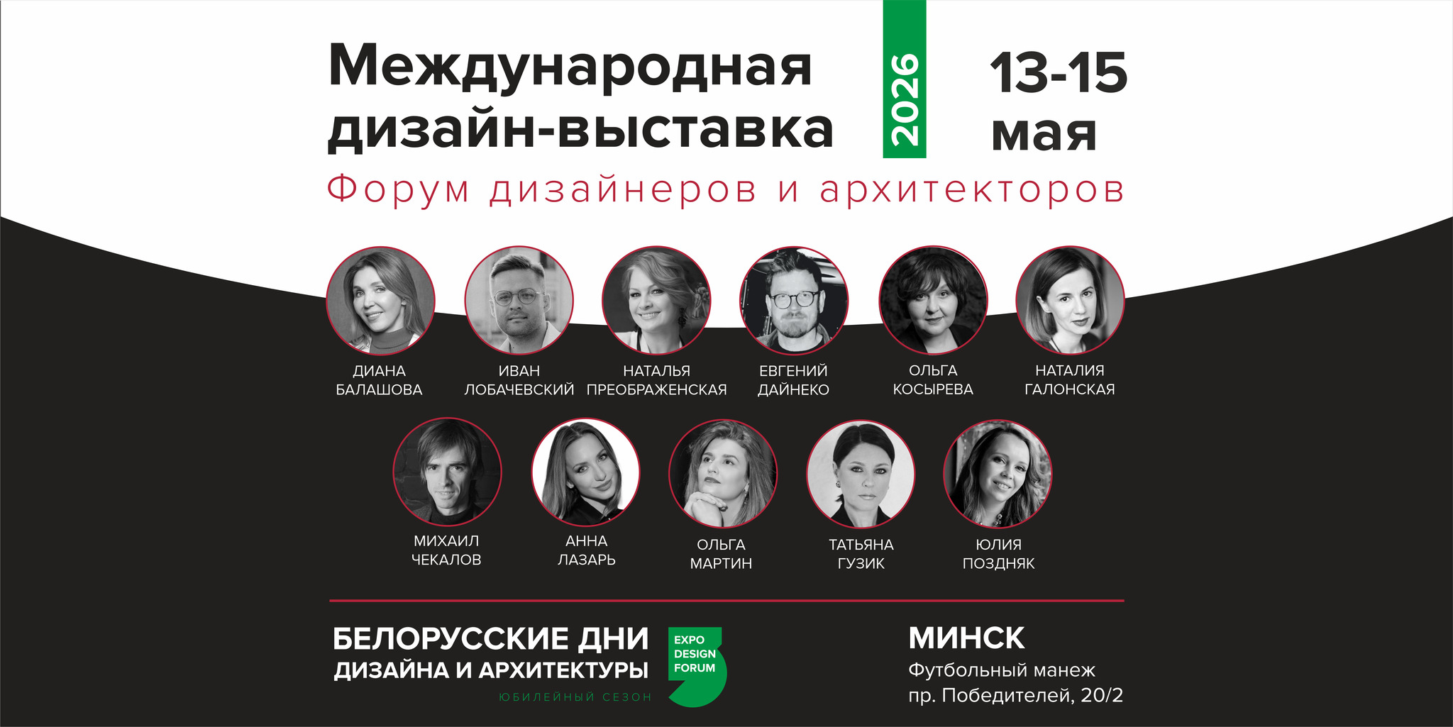 С 13 по 15 мая 2026 года в Минске состоится юбилейная пятая международная дизайн-выставка мебели, отделочных материалов, освещения и предметов декора Белорусские дни дизайна и архитектуры.