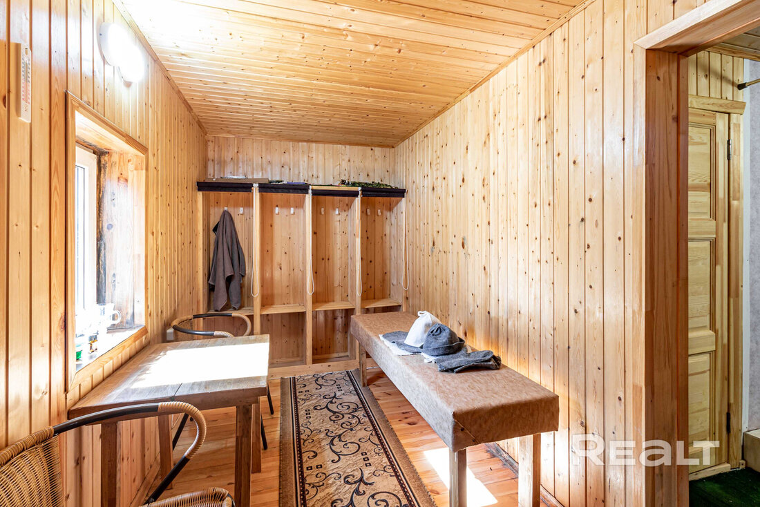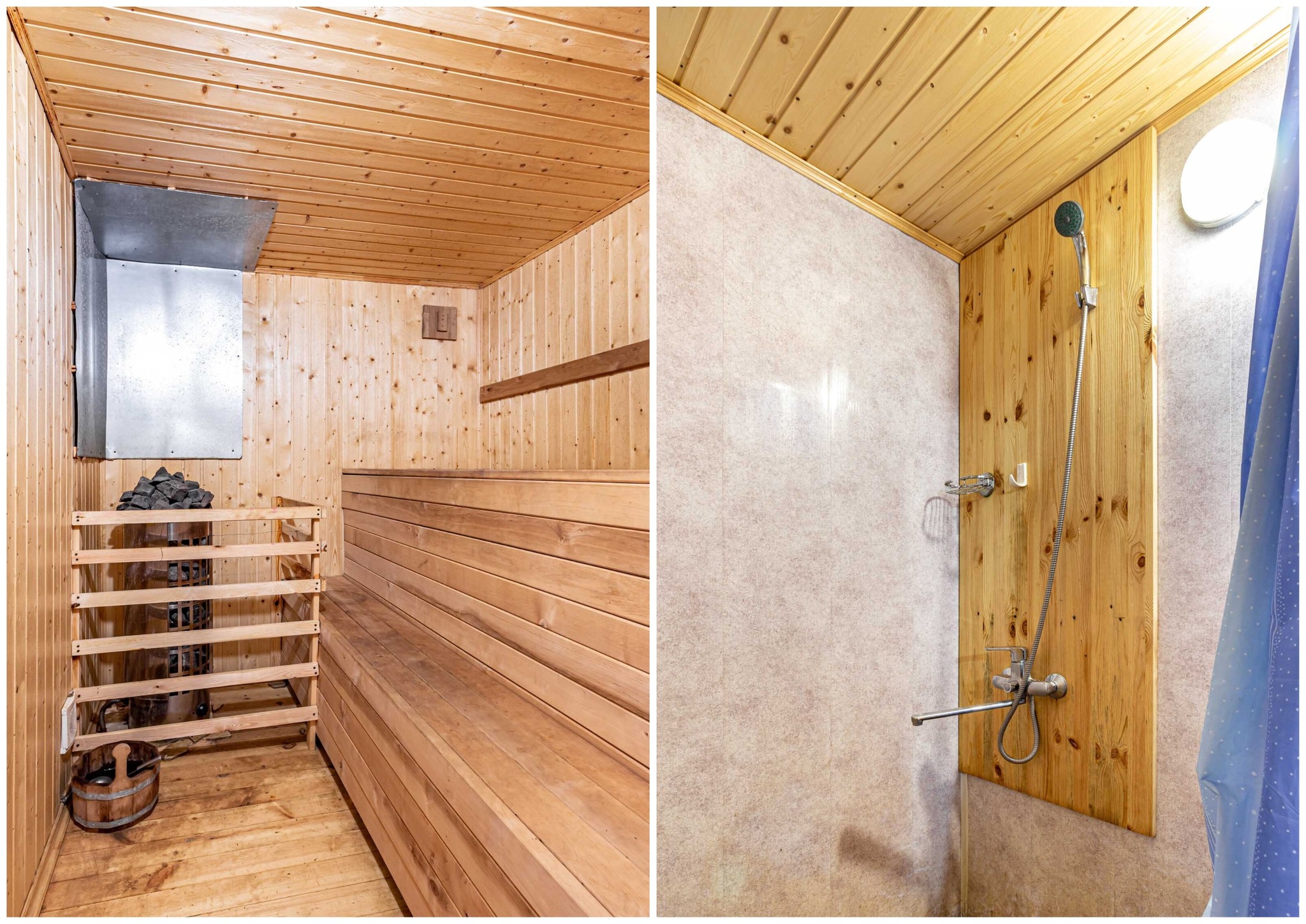 Есть в загородном доме и баня с элетротеном, душевой и просторной комнатой отдыха.