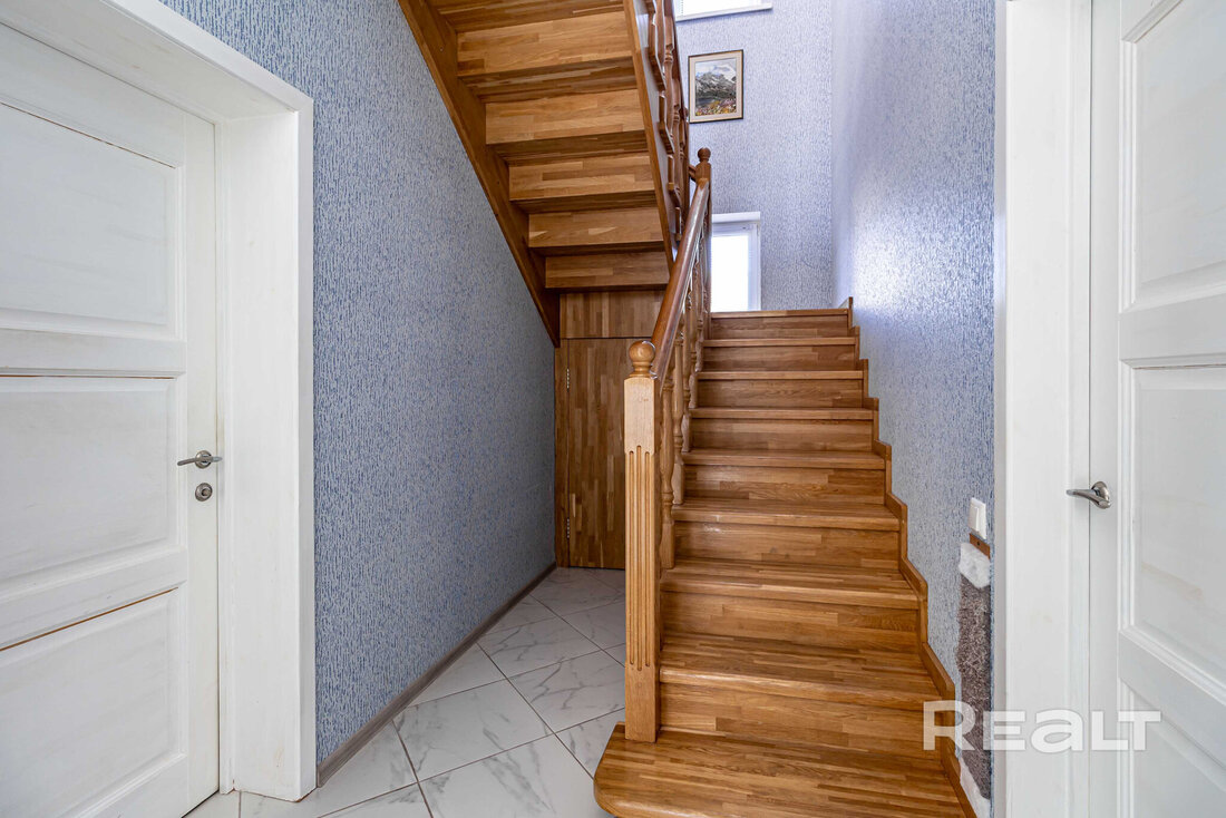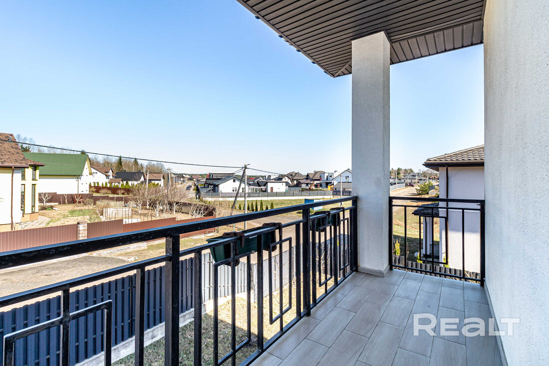 На втором уровне, куда ведет качественная дубовая лестница, находятся три спальные комнаты и еще один большой санузел. Здесь же — балкон с великолепным видом на окрестности.