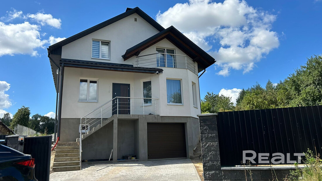 Дом здесь двухэтажный, с теплым подвалом и гаражом под домом. Построен в 2021 году. Стены из блоков, фасад оштукатурен и покрашен, на крыше – металлочерепица.