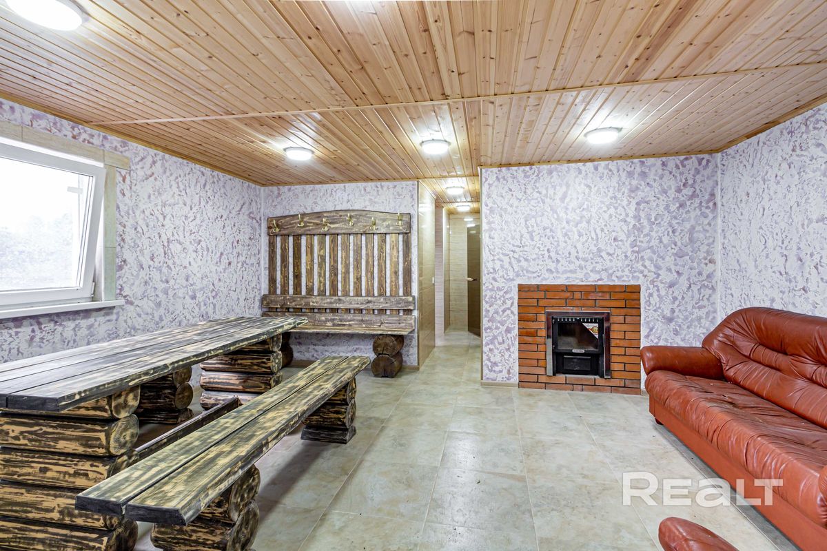Баня на дровах, с комнатой отдыха, камином и бильярдной.