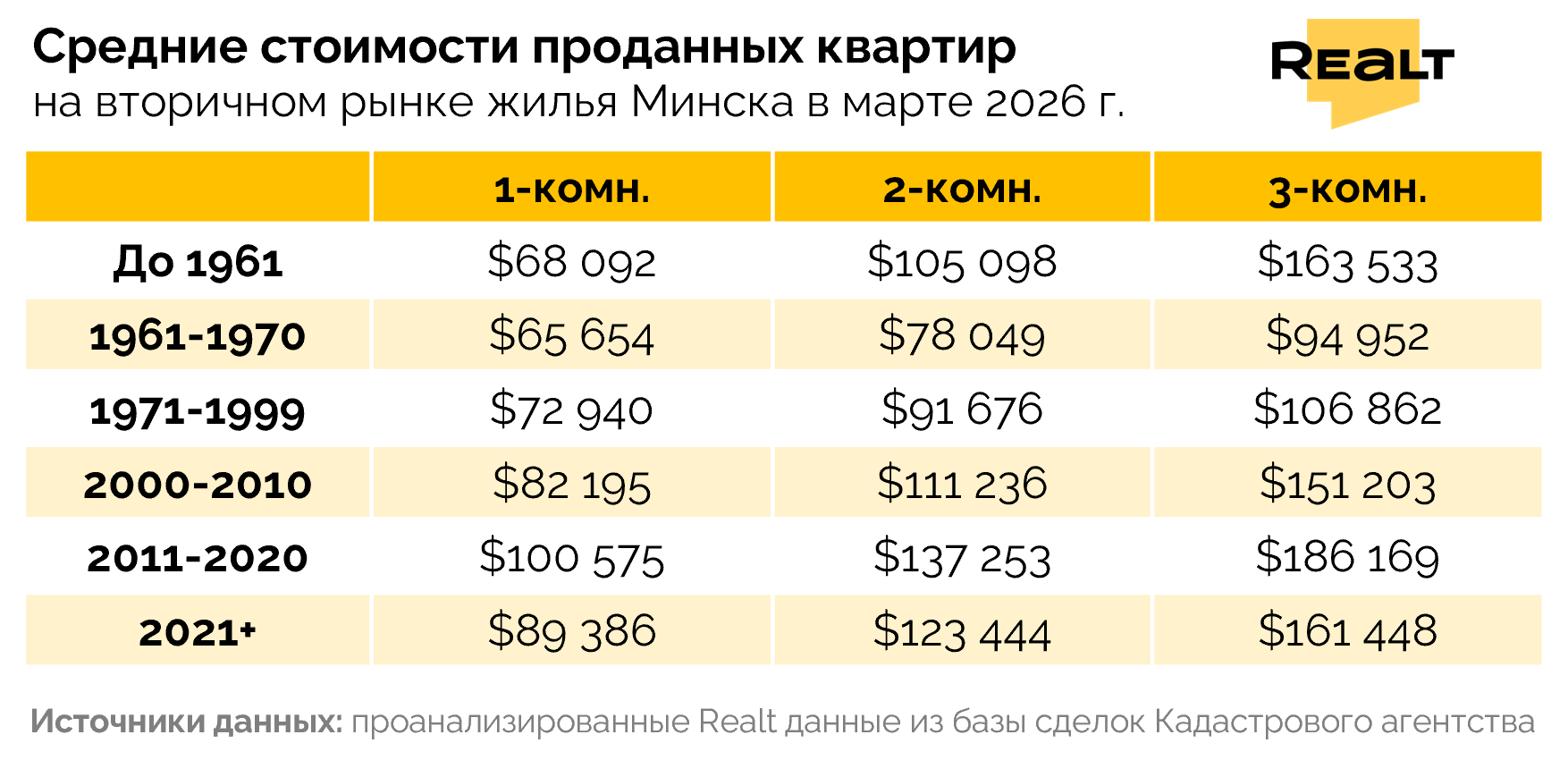 - Однокомнатные квартиры в среднем предлагаются в продаже за 92 000 $ (2 450 $ за метр)