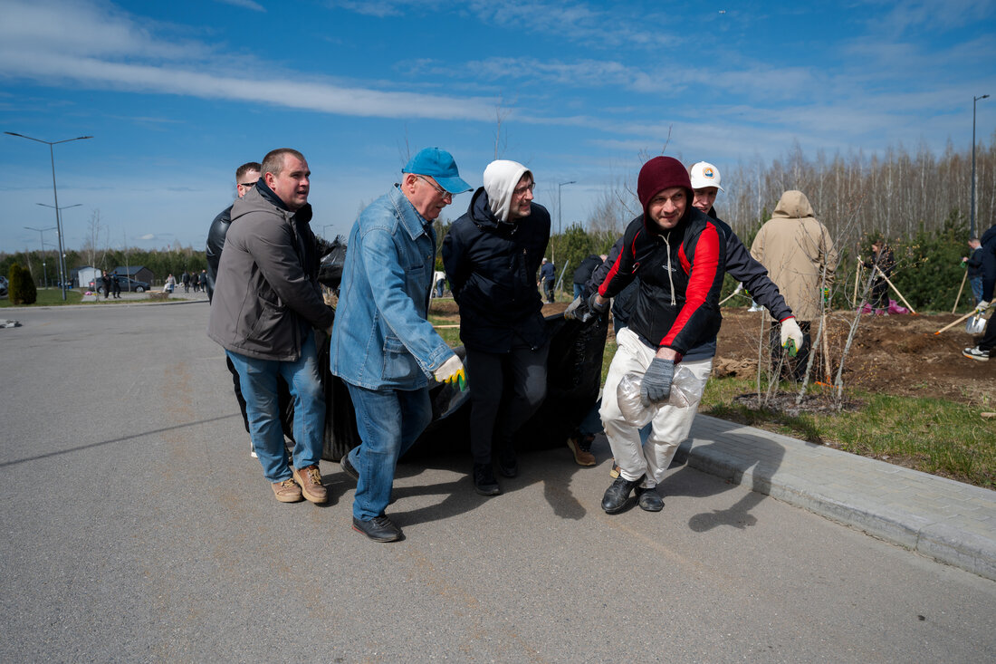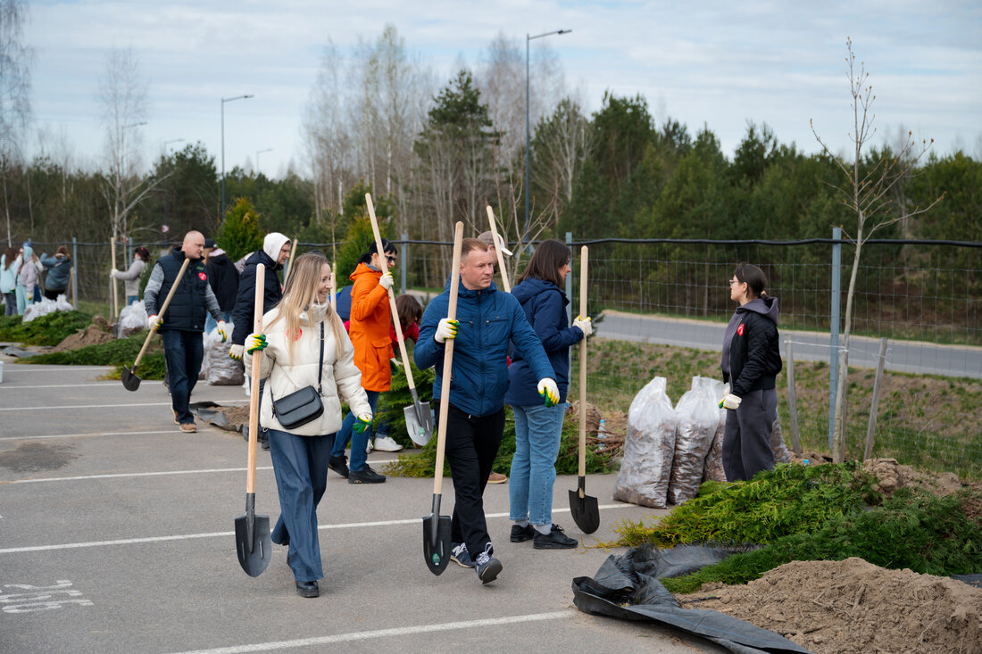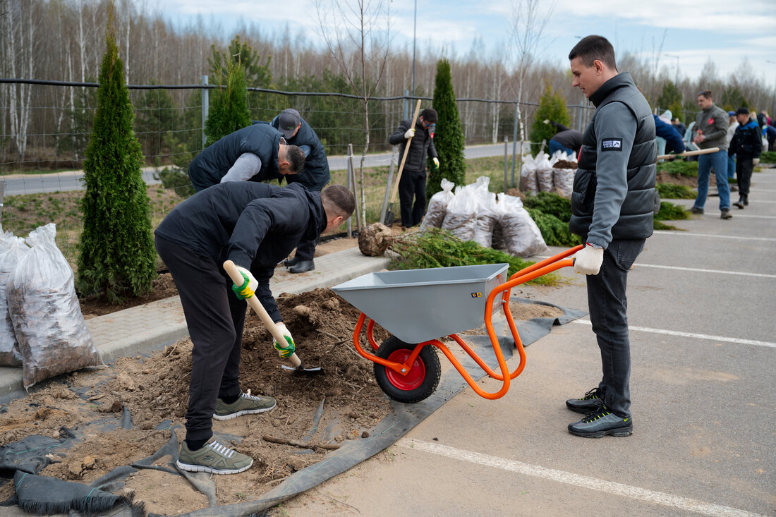 На эко-субботнике укрепили природные барьеры вокруг комплекса. А еще собрали кормушки для птиц и развесили их в новом участке-парке, где скоро закончат благоустройство и появятся новые прогулочные зоны.