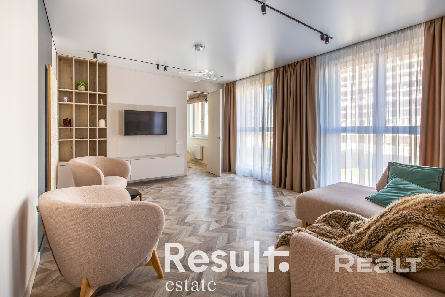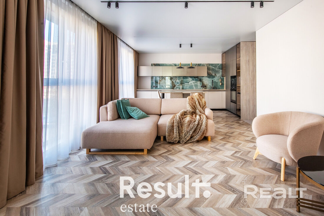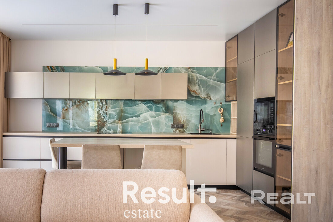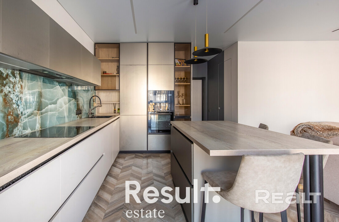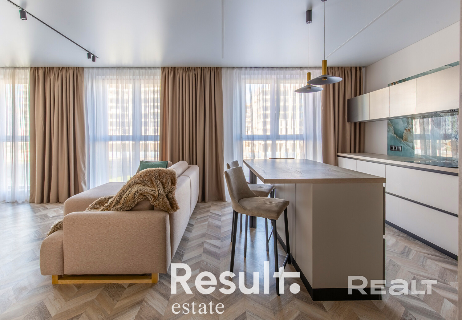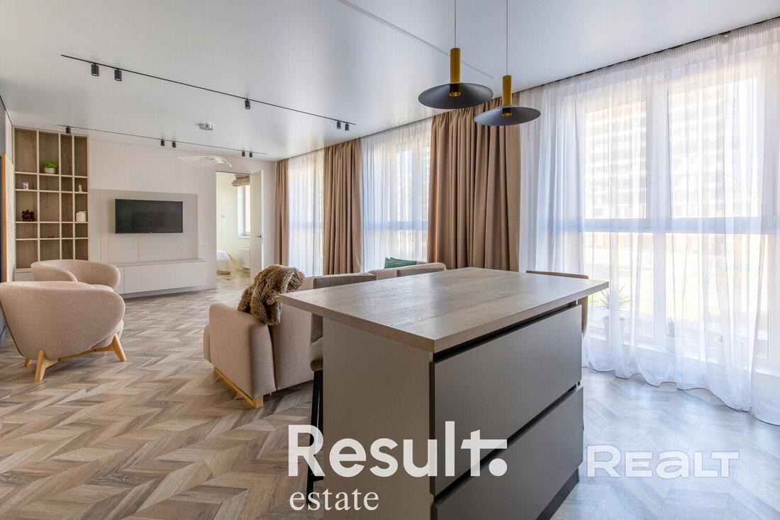 В одном из домов Минск-Мира продается просторная евродвушка с пятью окнами и хорошим ремонтом. Свободную планировку грамотно распределили, чтобы не было лишних углов. Этот вариант для тех, кто мечтал о большой обустроенной кухне с островом. Оцените дизайн сами.