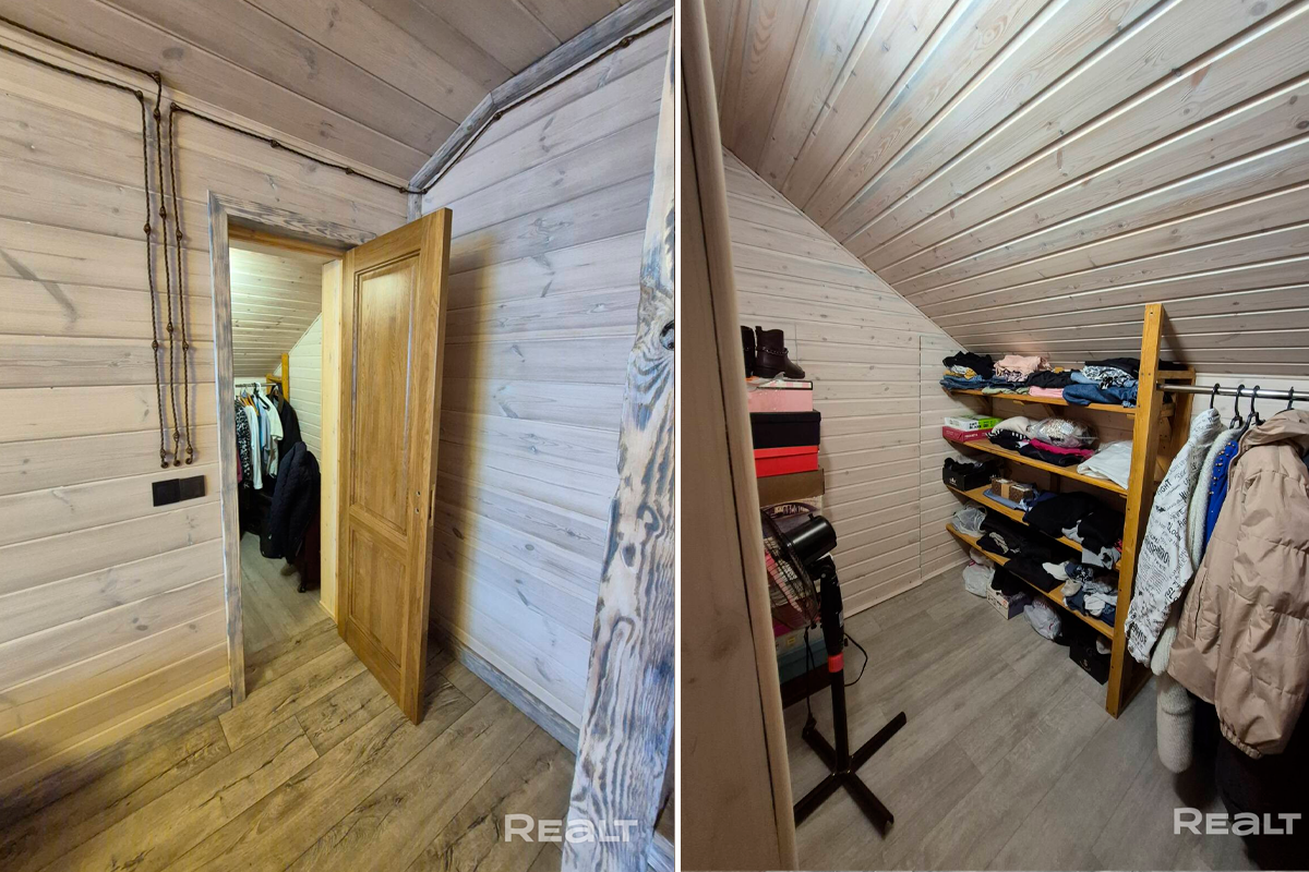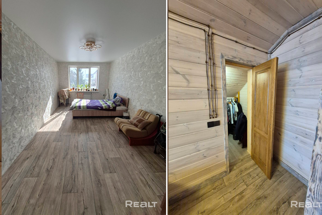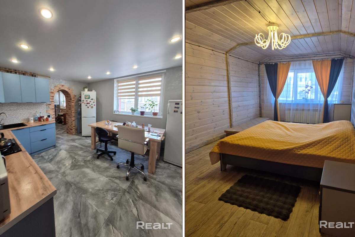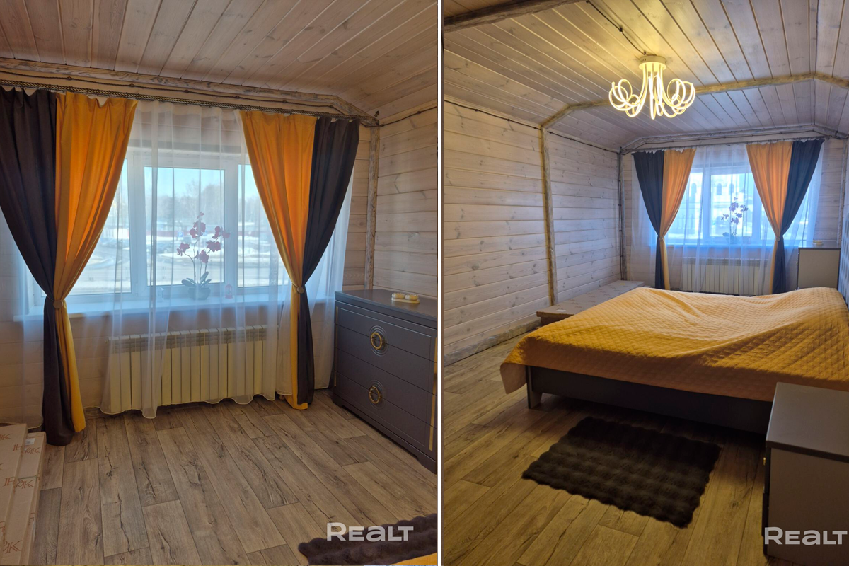 Общая площадь дома — 231 квадрат, 151 из которых приходится на жилую площадь. В доме четыре изолированные комнаты и кухня-гостиная площадью 16 квадратных метров. В санузле установлена душевая кабина. На втором этаже есть гардеробная.