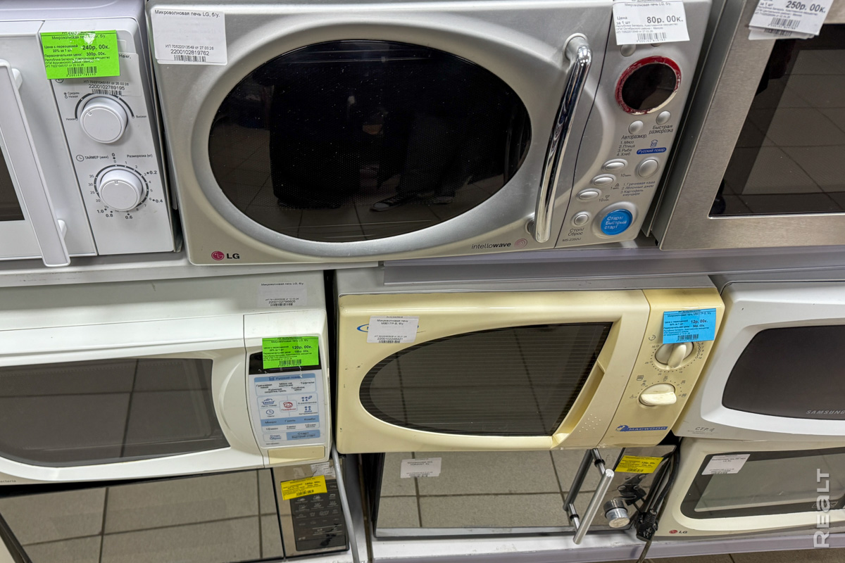 Начнем с крупной техники. Телевизоры представлены в разных ценовых категориях — от 640 рублей за LG до 2 400 рублей за Samsung. Мы попали в тот день, когда на большинство моделей телевизоров цены были снижены на 20%. Слышали, как покупатели обсуждали, что зайти стоит в другой день, имея в виду, что после переоценки что-то станет дешевле.