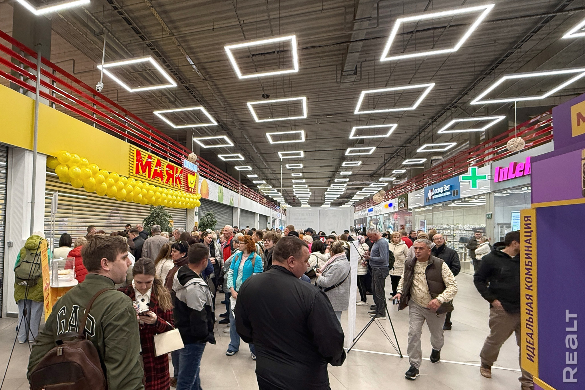 Первый гипердискаунтер низких цен «Маяк Maxi» открылся в ТЦ Diamond City в Малиновке. Накануне здесь обещали скидки, подарки и угощения, и сегодня на открытии собрались такие огромные очереди, которых не было давно. Realt сходил на открытие нового магазина.