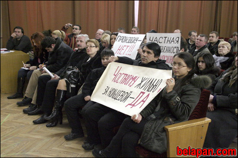 Однако жители не очень верят этим обещаниям — многие пришли на встречу с плакатами, на которых написано: «Произволу — нет!», «Частному жилью за кольцевой — да!», «Частная собственность неприкосновенна».