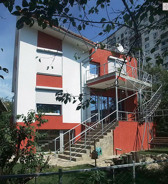 Проект занесен в каталог пассивных домов от института пассивного дома в Дармштадте. Здание возведено на минимальном участке земли (250 кв. м) на Сырце в Киеве.