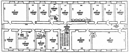 В здании разведены коммуникации, есть телефоны, электроэнергия, 2 санузла на первом этаже. Материал стен — кирпич, крыша — шифер, окна — стеклопакеты. Цена 1250 у.е. за 1 кв.м.