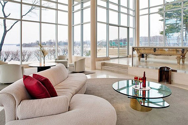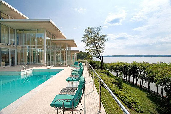 Особняк расположен на берегу Чесапикского залива в США. Его стены сделаны из стекла, но обитателям не стоит беспокоиться о своей безопасности и сохранности частной жизни, так как здание расположено на частном полуострове в 1,4 га. Площадь стеклянного дома составляет 900 кв. метров. Сквозь стены открывается прекрасный вид на реку.