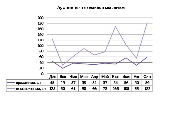 • по аукционам по продаже права аренды земельных участков- 182 лотов выставлено, 59 из них продано, на сумму 12 172 372,383 тыс. рублей;