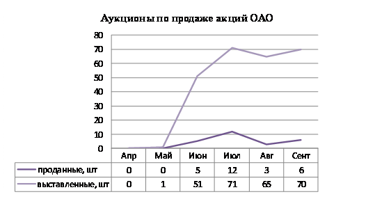 Начатая во втором квартале компания по массовому проведению аукционов по продаже лотов принадлежащих государству акций в ОАО в третьем квартале получила мощное развитие.