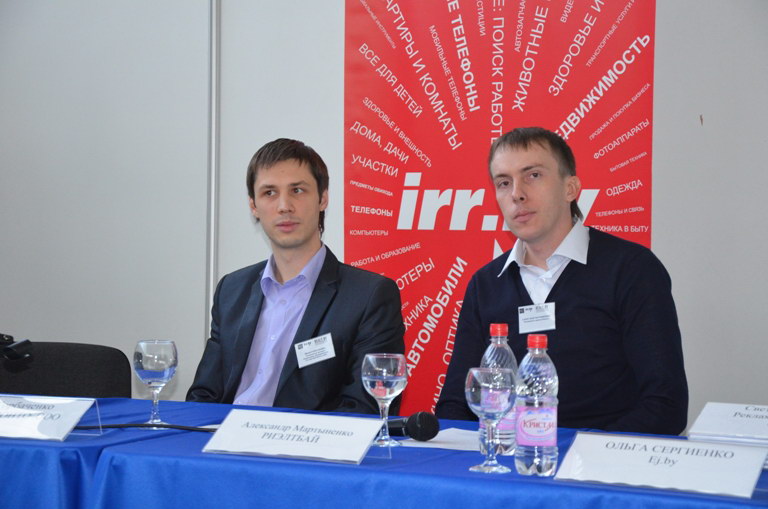 Иван Горбаченко, (Белпронто), и Александр Мартыненко, (realt.by), в докладе «Рынок интернет-рекламы недвижимости», рассказали о инструментах, которые используются продавцами недвижимости в интернете в кризисное время и обсудили показатели измерения эффективности этих рекламных каналов. Иван Горбаченко отметил что из перечисленных методов (Баннеры, визитка, интернет-пертнеры, ключевые слова, партнеры рубрики, спецпредложения, строки, финансовая ссылка) наиболее эффективные результаты в 2011 показали годах «спецпредложение» и «баннеры». В ходе совместного доклада два сильных конкурента realt.by и irr.by впервые сравнили данные о посещаемости и пересечении аудитории. Realt.by сохранил за собой звание лидера по охвату целевой и профессиональной аудитории, однако в ходе сравнения выяснилось что сайт irr.by сильнее в регионах Беларуси и имеет большее количество показов страниц.
