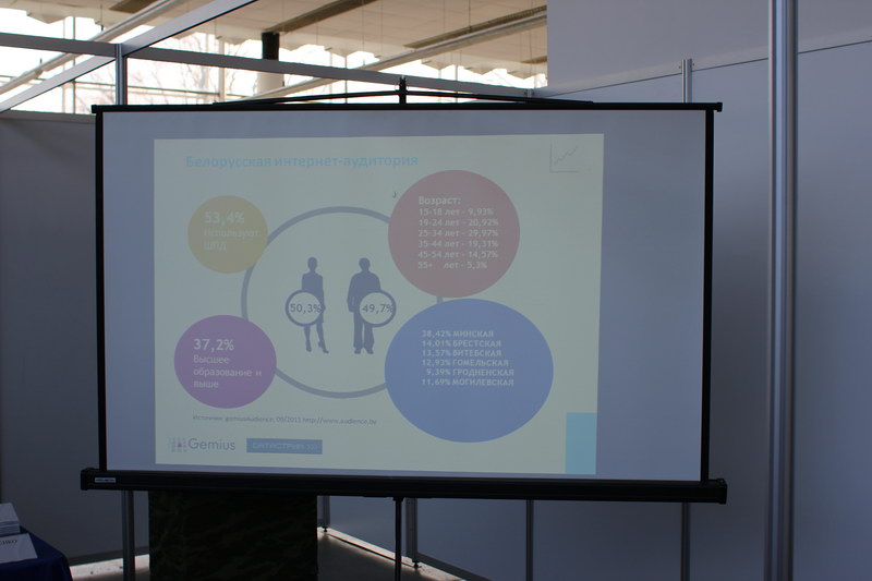 Возраст большинства пользователей байнета колеблется в пределах 24−35 лет, а основное число пользователей (около сорока процентов) проживает в столице и минской области. Из них диплом о высшем образовании имеют 37.2 процента. Такими данными поделился Михаил Дорошевич, руководитель проекта Gemius Беларусь в докладе «Кто, когда и как ищет недвижимость в Интернете?». Среди выводов, к которым пришел докладчик: «больше не значит лучше». Род деятельности, пол, возраст и иные факторы следует учитывать при продвижении он-лайн рекламы отдельно даже для каждого региона.