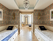 Эта квартира в доме на Каховской, 17 слегка напоминает квест-комнаты или музей. Сперва нужно попасть в коридор, потом в детскую, а напоследок остается кухня-спальня. Из студии получилось сделать евродвушку — владельцы вывернулись как могли. Дизайн интерьера тоже авторский, с акцентами, которые часто встречаются в объектах на Карла Маркса или в доме «У Троицкого». Например, предметы под золото и люстры даже в санузле. Оцените стиль и цену сами.