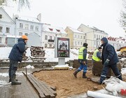 Началась реконструкция набережной Свислочи возле ст. метро «Немига». На участке между ул. Богдановича и Островом слез, протяженность которого более 370 метров, демонтируют плитку и устанавливают строительное ограждение.
