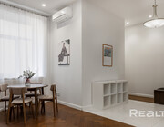 Этот дом в самом центре Минска построен больше ста лет назад. Его возводили как доходный — квартиры там сдавали в аренду, а владельцем был врач. Здание пережило две войны и в прошлом веке здесь селилась партийная элита, писатели и поэты. Интересно, что и сейчас, в 2026 году, здесь можно снять квартиру в аренду. Симпатичный вариант на сутки — светлую четырехкомнатную квартиру с приятным ремонтом — мы нашли в сервисе Realt.Бронь.