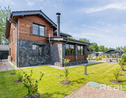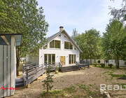 В Логойском районе продается современный двухэтажный дом. Внутри сделан хороший ремонт. Первый этаж занят общими зонами, в том числе и сауной. На втором расположились три спальни с выходом на террасы. Оцените дом почти за 200 тысяч долларов.