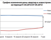 За период с 30 апреля по 7 мая 2012 года аналитическим центром Realt.by были зафиксированы следующие изменения на первичном и вторичном рынках недвижимости: средняя цена предложения квартир уменьшилась на 0,15% и составила 1294 $/м2;средняя цена на новостройки увеличилась на 0,75% и составляет 1203 $/м2.Цены на вторичном рынке снижаются вторую неделю подряд и останавливаются на отметке в 1294 $/м2, повторяя минимум с начала года. В то же время у новостроек рост продолжается уже месяц, а нынешнее…