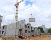 Новый квартал в районе улицы Серова около станции метро «Неморшанский сад» Минский домостроительный комбинат начал возводить несколько месяцев назад. Сейчас в процессе первая высотка — некоторые части здания привозят на стройку целиком, и конструкции весом в 16 тонн парят в воздухе. Что еще происходит на стройплощадке, рассказали в «Минскстрое».