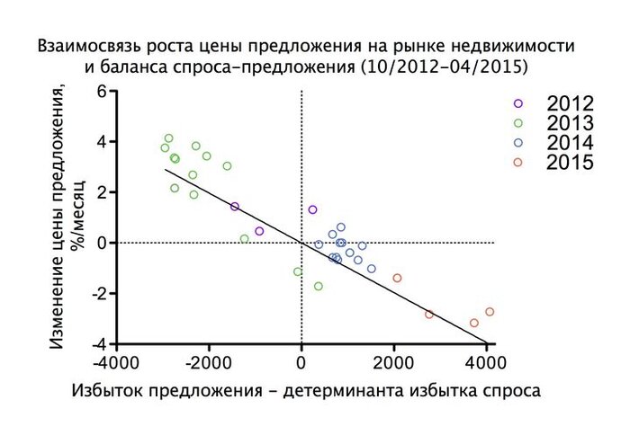 Была найдена четкая взаимосвязь между указанными в новой гипотезе параметрами. Движение цены на 81% можно предсказать, зная только соотношение спроса и предложения и ничего не зная о зарплатах (рисунок 2).
