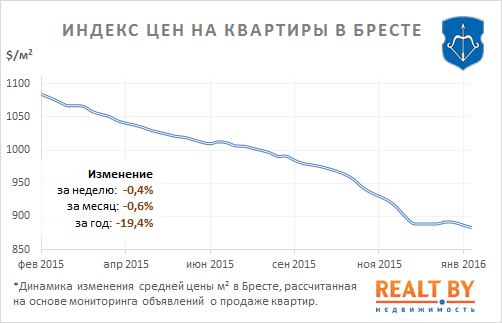 За неделю с 25 января по 1 февраля 2016 года информационно-аналитическим центром Realt.by были отмечены следующие изменения на вторичном рынке жилья города Бреста: