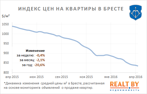 За неделю с 4 по 11 апреля 2016 года информационно-аналитическим центром Realt.by были отмечены следующие изменения на вторичном рынке жилья города Бреста: