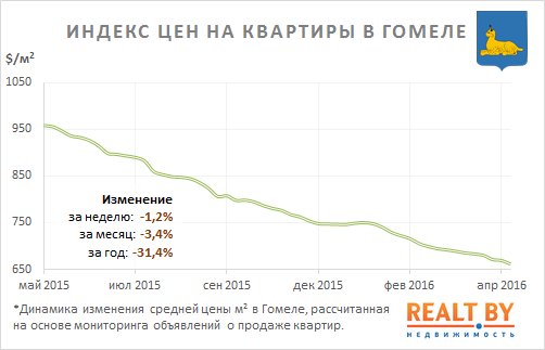 За неделю с 25 апреля по 2 мая 2016 года информационно-аналитическим центром Realt.by были отмечены следующие изменения на вторичном рынке жилья города Гомеля: